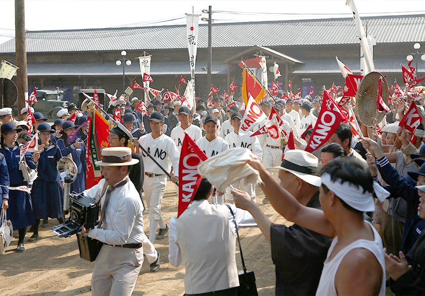 この嘉義市内に嘉義の街のセットを作り撮影しており、2013年1月29日に台湾のメディアの取材日が設けられ、全島優勝で凱旋したパレードのシーンを公開しました。そして、この後まだまだ撮影は続いたのでした。<写真2枚目>